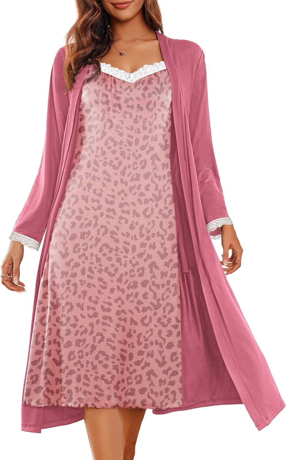 - 【Night Robe】This comfortable and V-neck robe features lace-trim long sleeves wrap design, mid-calf length. Inside tie for a better fit and self-detachable belt for convenience. Two side pockets for holding keys and so on.
